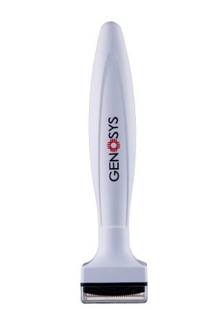 Stempel ma 140 igieł a jego górna część jest lekko zaokrąglona, aby wszystkie igły wchodziły w skórę idealnie prostopadle.